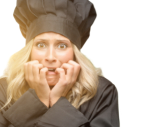 Bon j’ai caché mon stress sous ma charlotte (le couvre-chef… pas le gâteau) et je me suis mise à la tâche sous son regard désapprobateur (qui ne m’a pas lâché de la journée…) et tellement lourd que même mes croissants ont eu du mal à se développer…
